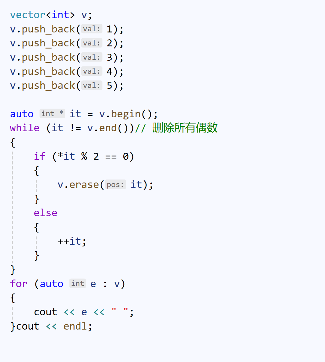 // 此时pos要更新,否则pos发生:迭代器失效