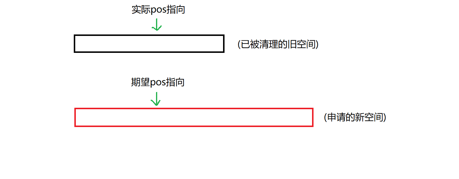 顺序表扩容结束后,旧空间释放,数据拷贝入新空间。而pos指向的还是旧空间上的数据,此时pos成了野指针,pos迭代器失效。
