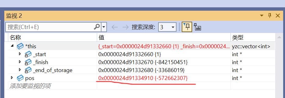 vector的私有成员变量有三个迭代器: