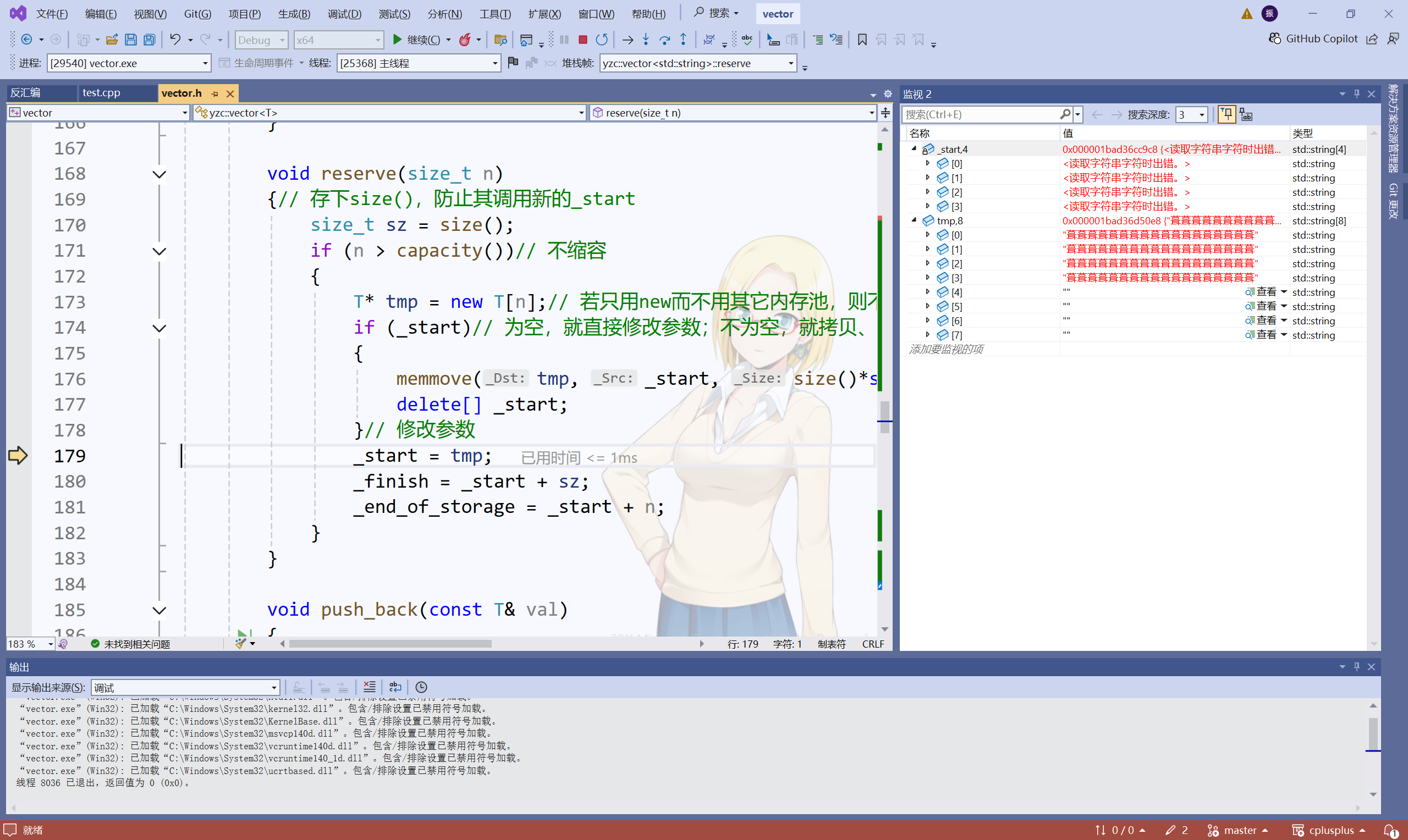 有了前面学习string的知识,我们可以写出vector的reserve()接口: