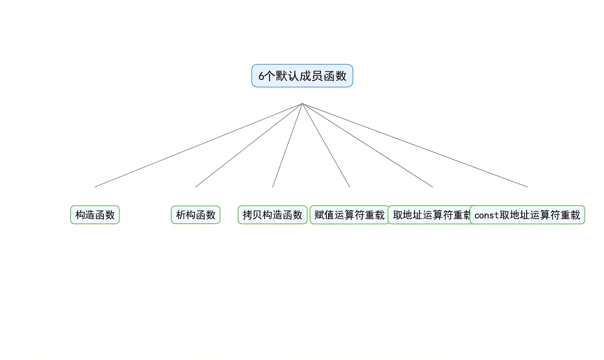 默认成员函数就是:你定义一个类的时候,如果你什么成员函数都不写,编译器也会自动给你生成 6 个默认的成员函数,帮你处理对象的创建、销毁、拷贝这些通用的操作,不用你自己写。