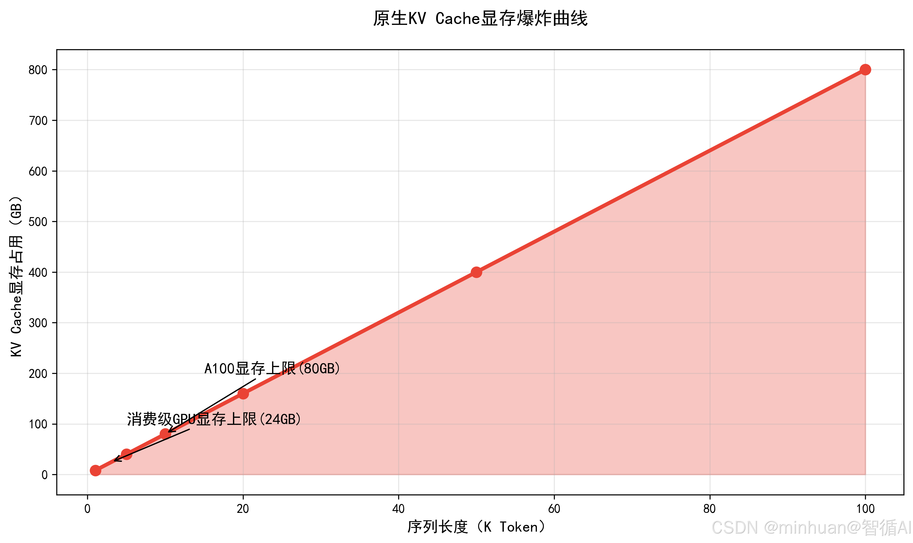 | 原生 KV Cache | 8GB | 80GB | 800GB | 8K(A100) |