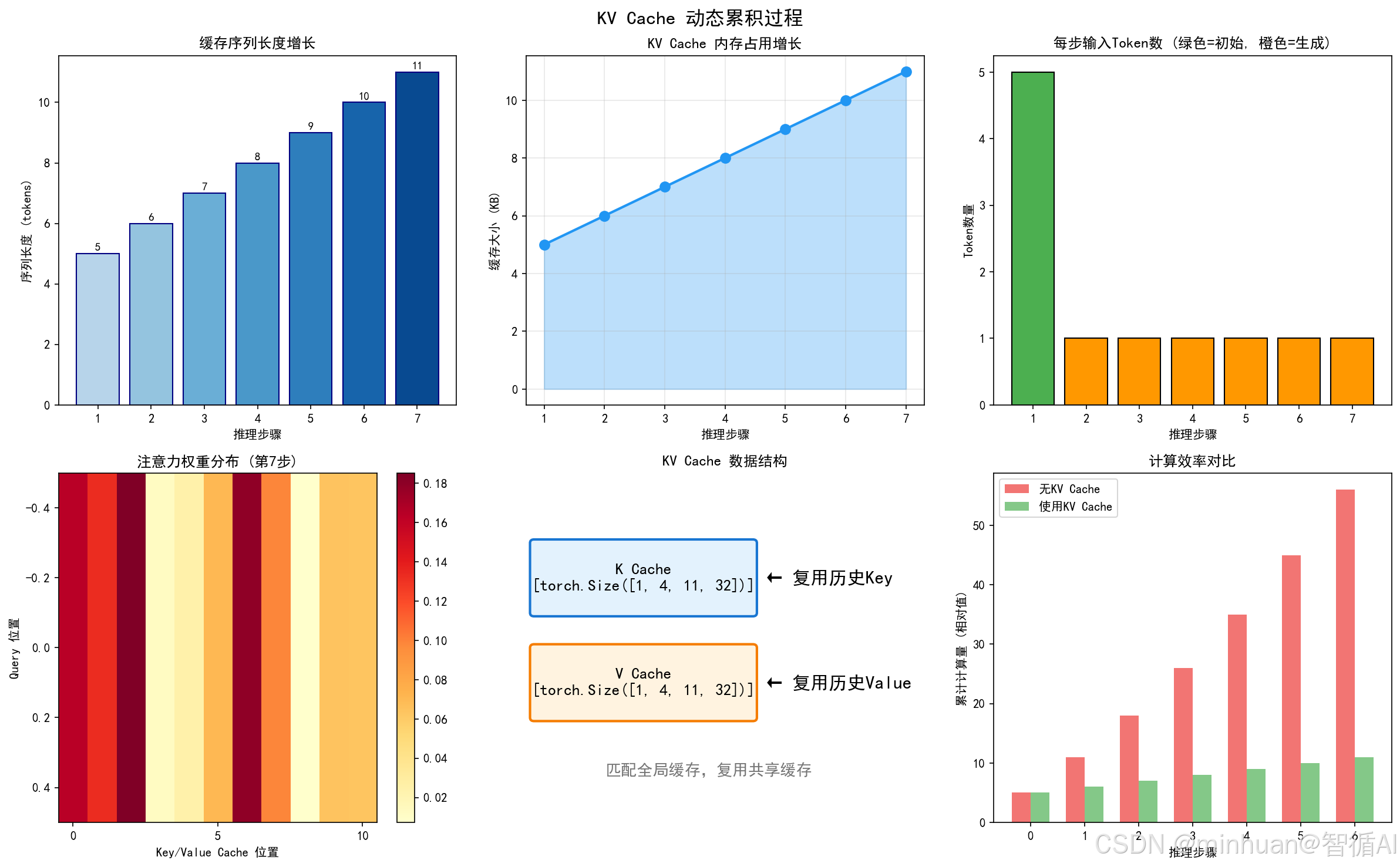 这就是KV Cache的核心价值:记住之前算过的,避免重复计算!