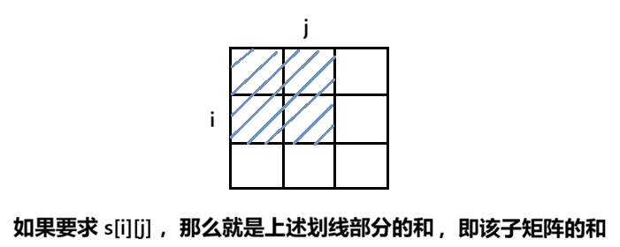 - 定义二维前缀和数组s[i][j] :s[i][j] = 从 左上角 (1,1) 到 右下角 (i,j) 的矩形内所有数的总和