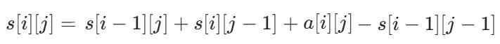 answer[i][j] = answer[i][j-1]+answer[i-1][j]-answer[i-1][j-1]+mat[i-1][j-1];