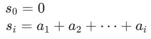 - 遍历一遍原数组arr,求出前缀和数组 s:s[i]=s[i−1]+arr[i] ------ 求和公式