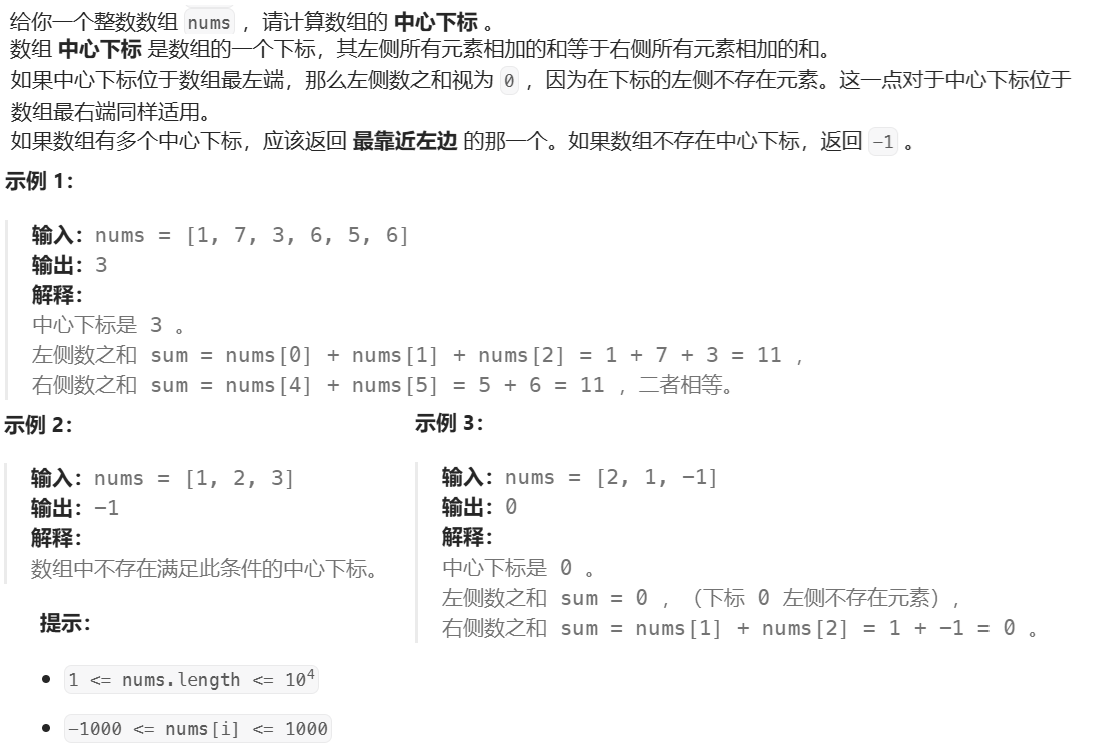 - 不用真的创建一个前缀和数组,那么前一个位置的前缀和 s[i-1] 用一个变量 sum 来替换即可,即 sum = sum + nums[i]。