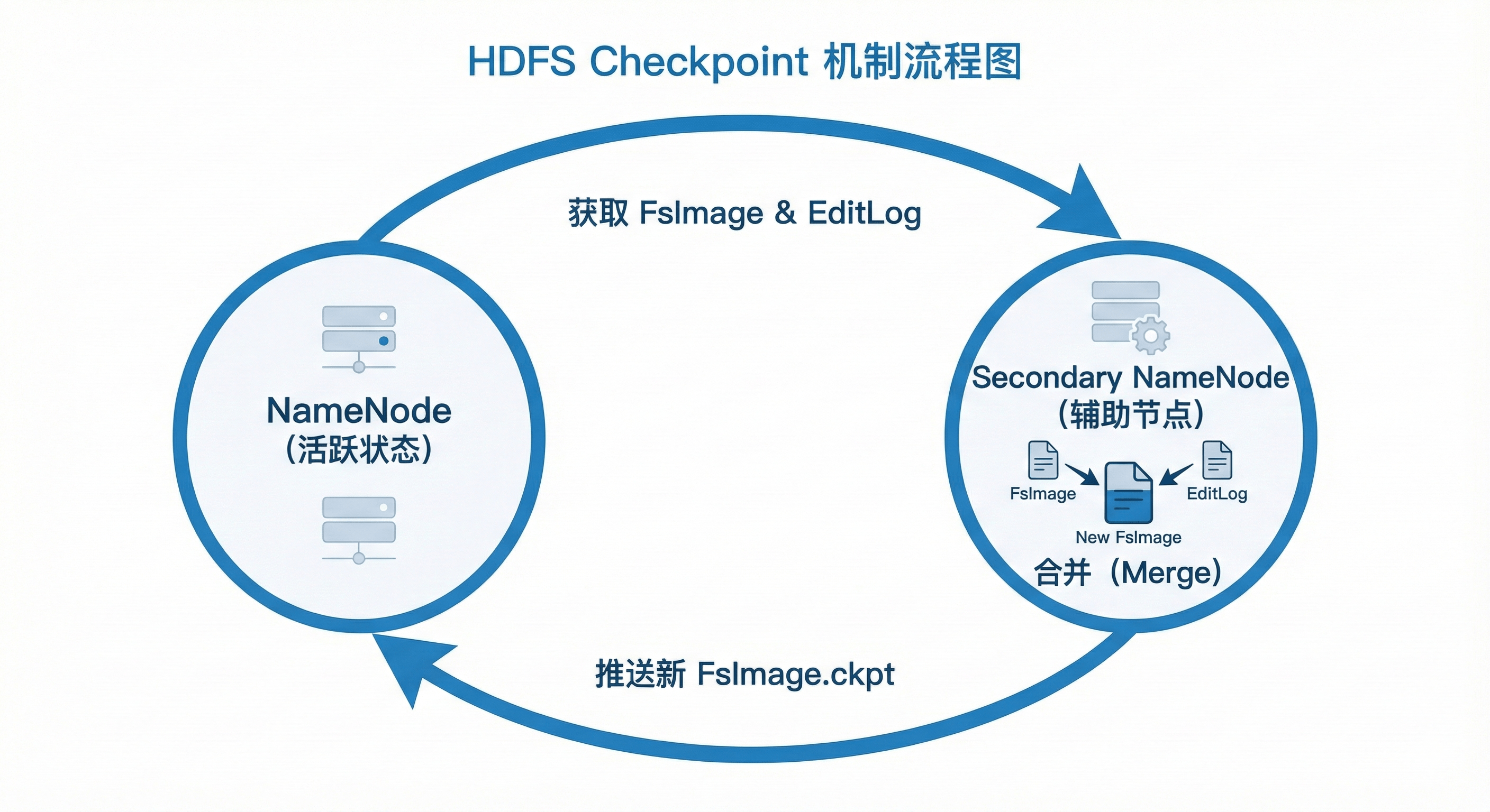 FsImage.ckpt,然后推回给 NameNode。 - 价值:防止 NameNode 的 EditLog 无限膨胀,缩短 NameNode 重启时的恢复时间。