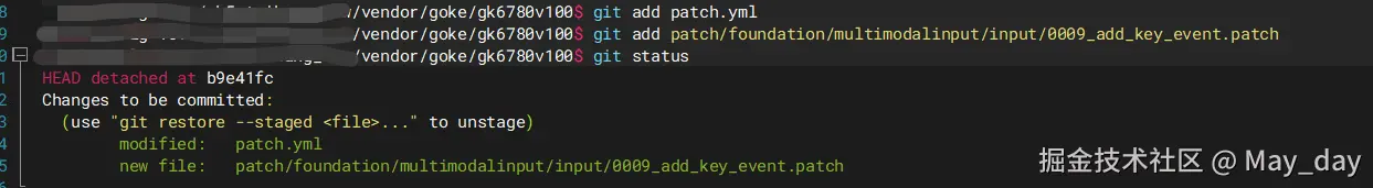 4.将添加到暂存区的修改内容,打包成patch,并patch cp到上面的目录下