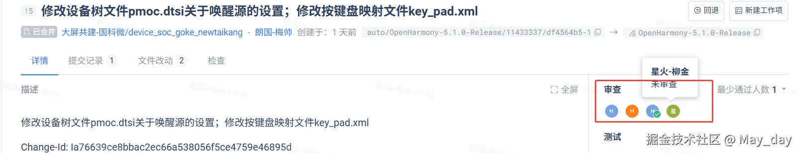 打开步骤7生成的URL,跟踪审核人审核代码并合入,完成动作闭环。