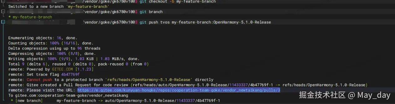 git push tvos my-feature-branch:OpenHarmony-5.1.0-Release 把本地分支推送到目标远程分支 tvos/OpenHarmony-5.1.0-Release
