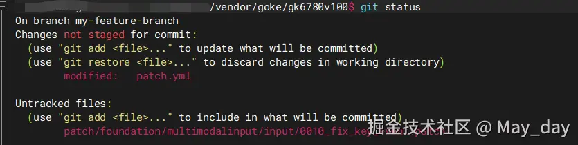 git add 文件路径,将修改的内容(包括patch.yml和你打包好的patch文件)