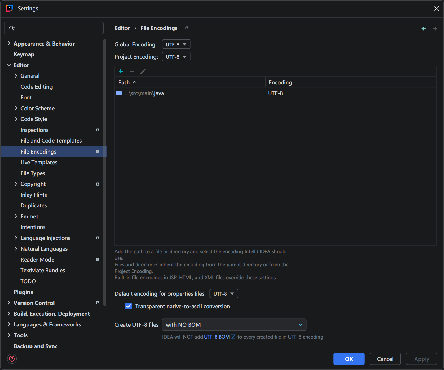IDEA 的 File Encoding 设置为 UTF-8