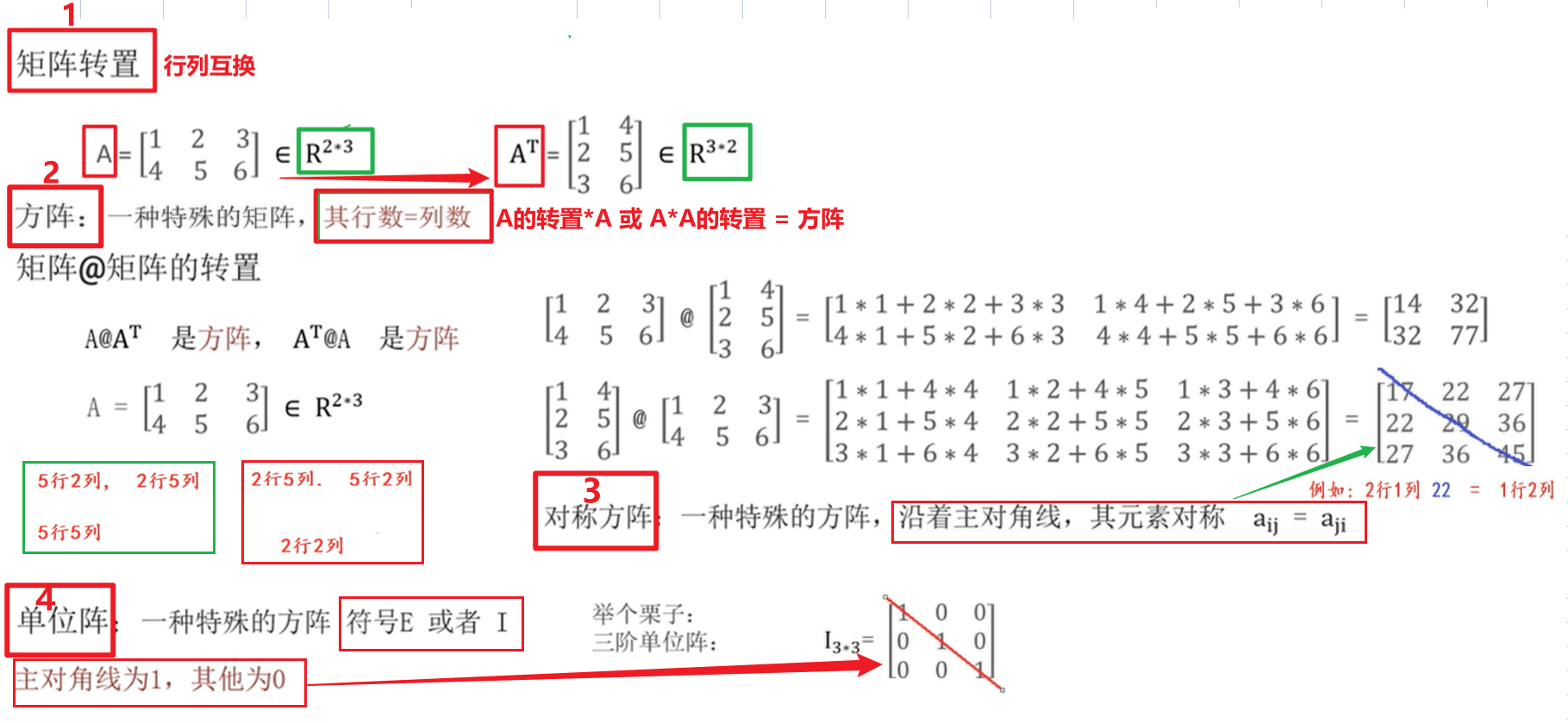 2.2 矩阵转置以及方阵、对称方阵、单位方阵