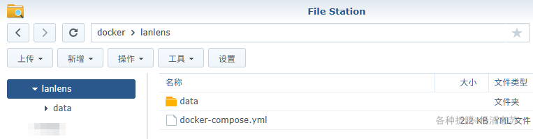 docker文件夹中创建一个新文件夹lanlens,再在其下建一个子文件夹data