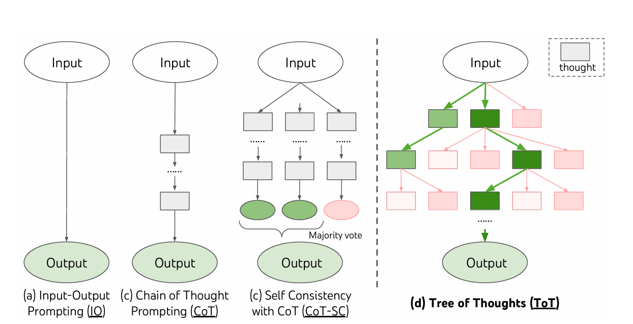 因此引入:多分支思考、状态评估、搜索策略(BFS / DFS)