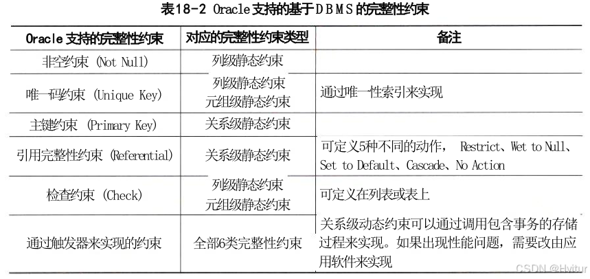 | 5 | 完整性约束分为静态/动态、列/元组/关系六类,动态多由应用实现 | 约束分类清晰,分层落地 |