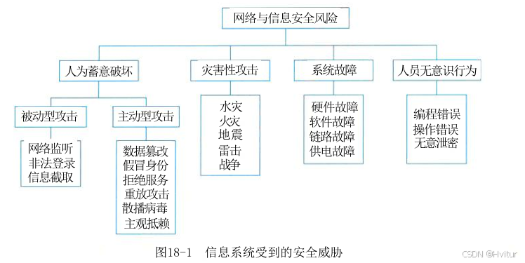 | 物理安全威胁 | 针对硬件设备、环境与物理资产的破坏或异常 | 自然灾害、电源故障、设备被盗/损毁、系统引导失败、数据库数据丢失、物理泄密 |