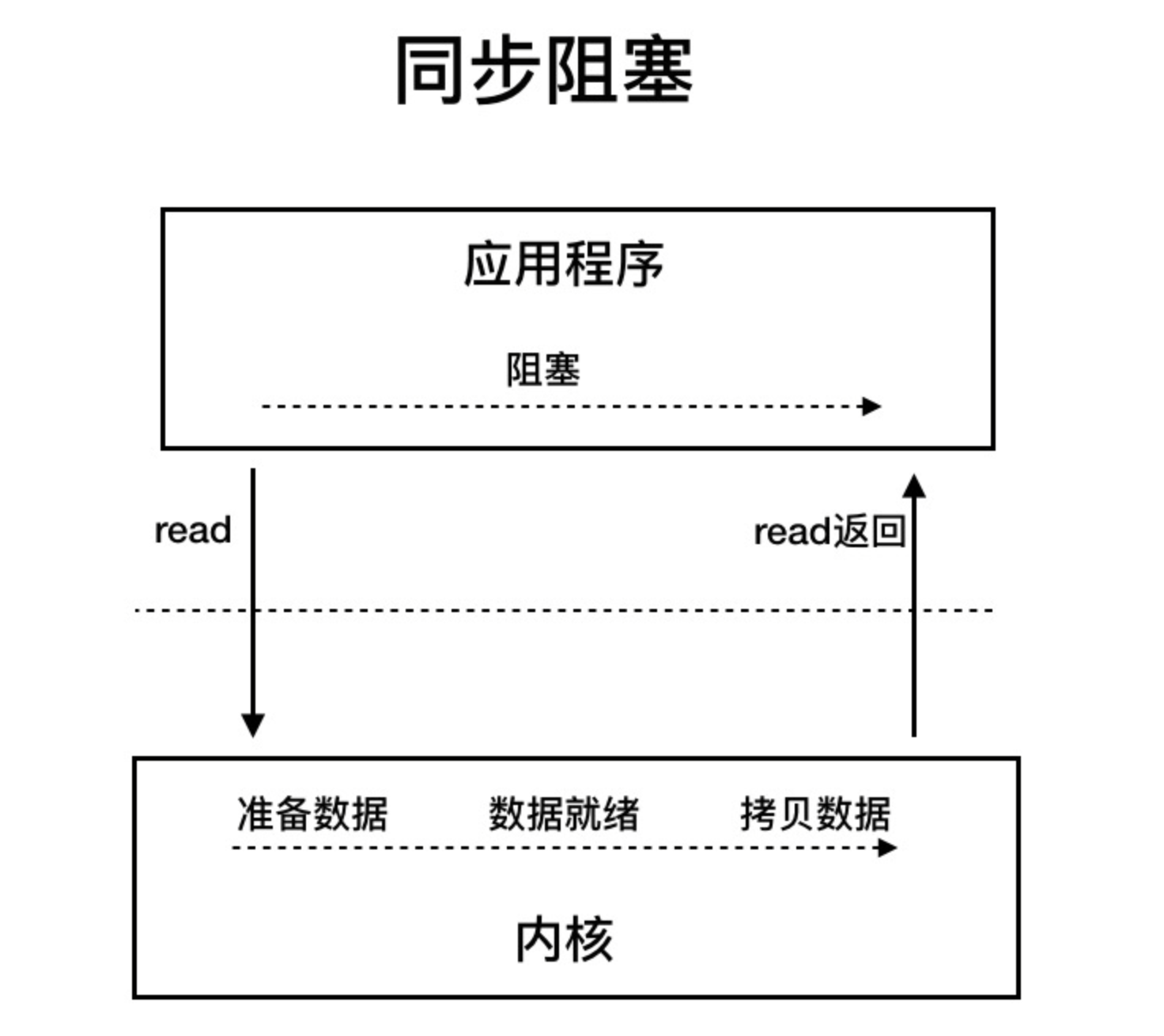 注意在"数据由内核空间拷贝到用户空间"阶段,它仍然是"阻塞"的。