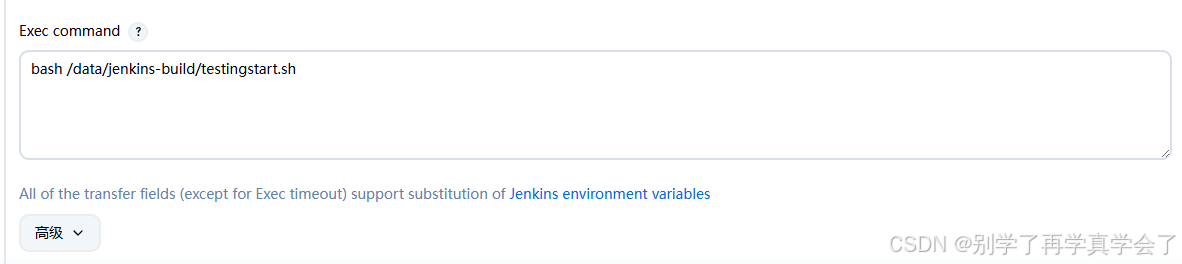 execCommand: "bash /data/jenkins-build/testingstart.sh" // 可选:部署后执行命令