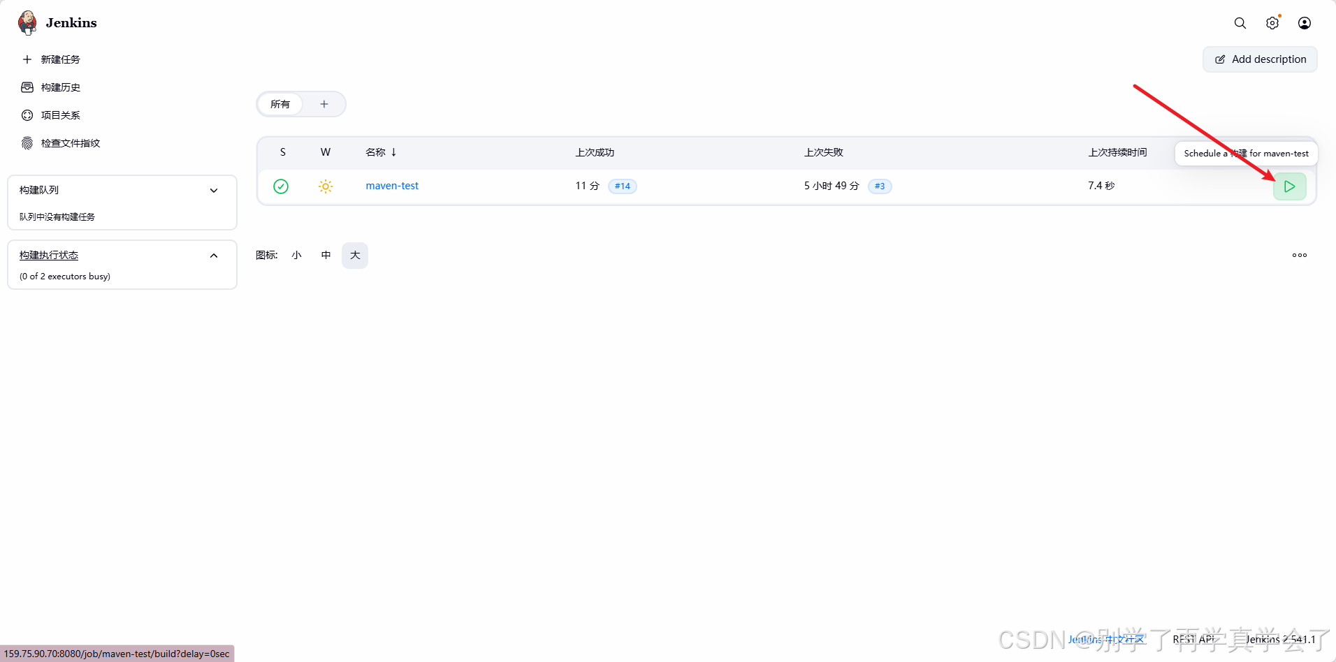 构建成功后会显示绿色√,并可以在控制台输出查看构建日志