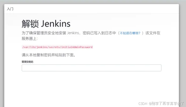在浏览器中输入 IP:8080 打开jenkins web页面,根据提示获取管理员密码