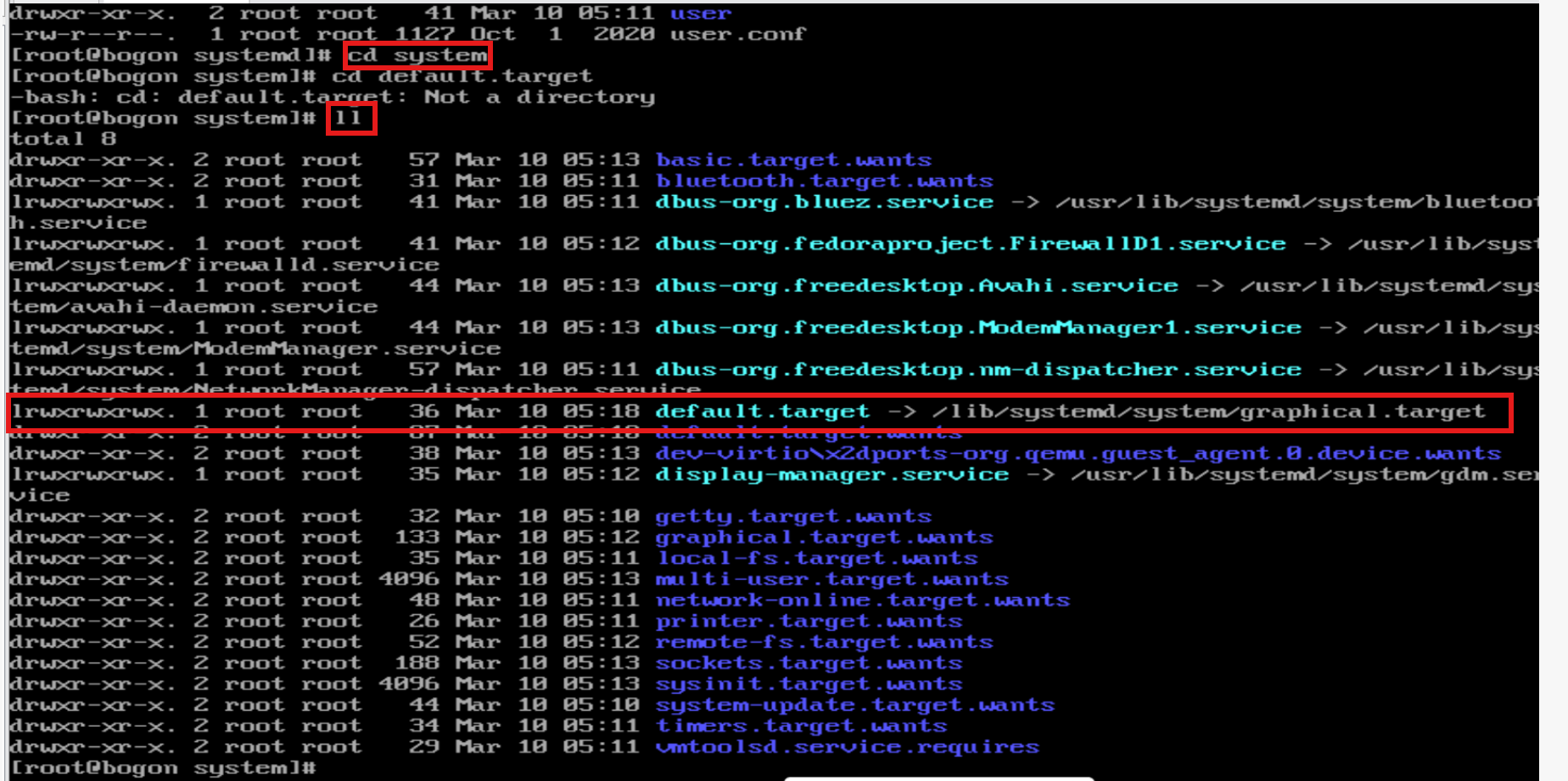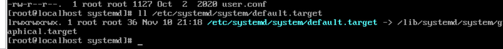 或者ll /etc/systemd/system/default.target