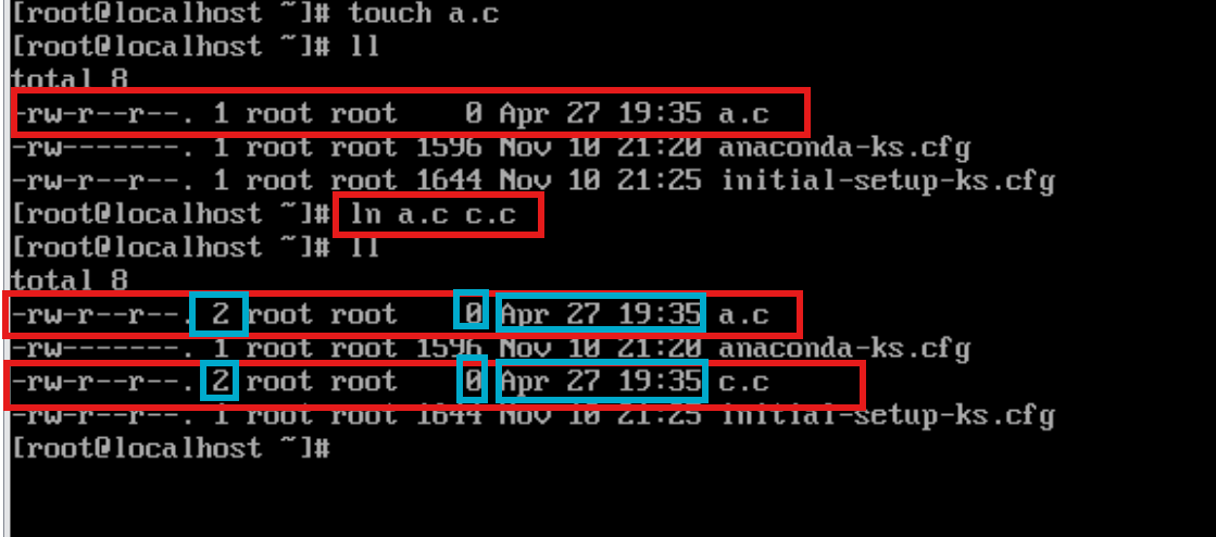 创建硬链接:ln a.c c.c