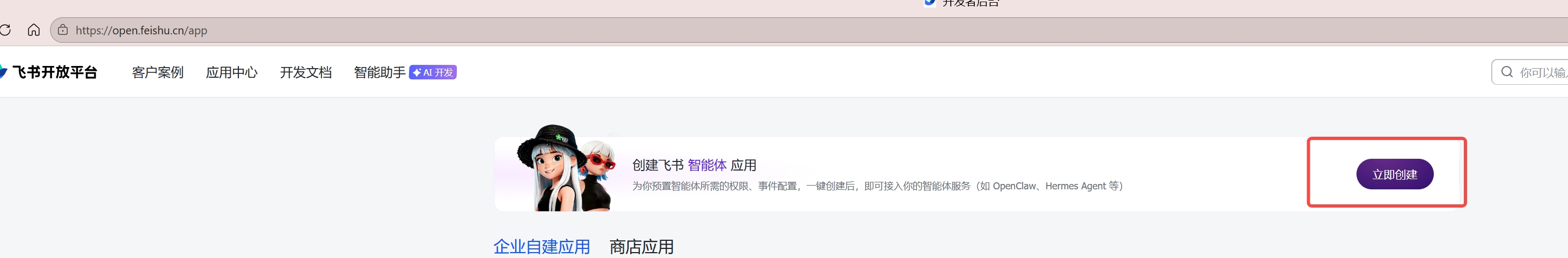 - 打开 飞书开发者后台