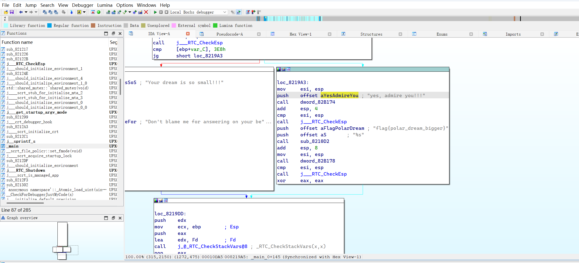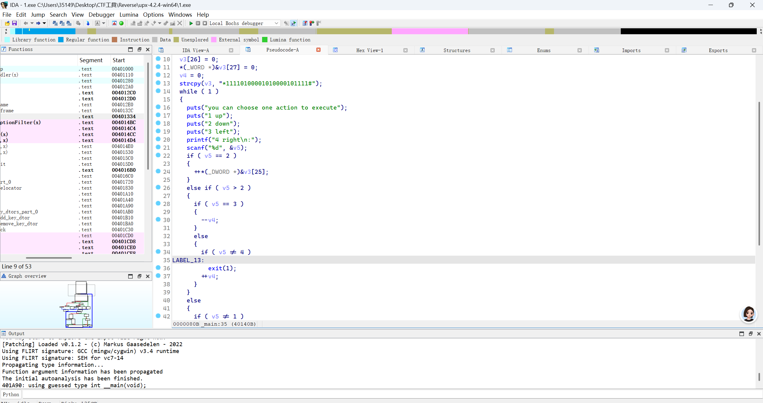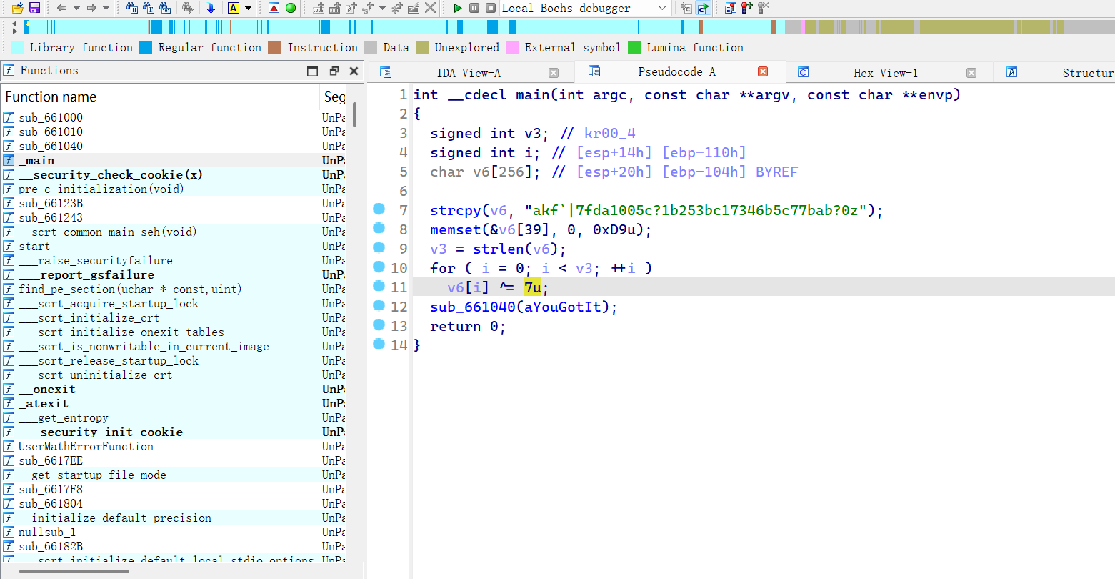 先脱壳,进入ida,main函数
