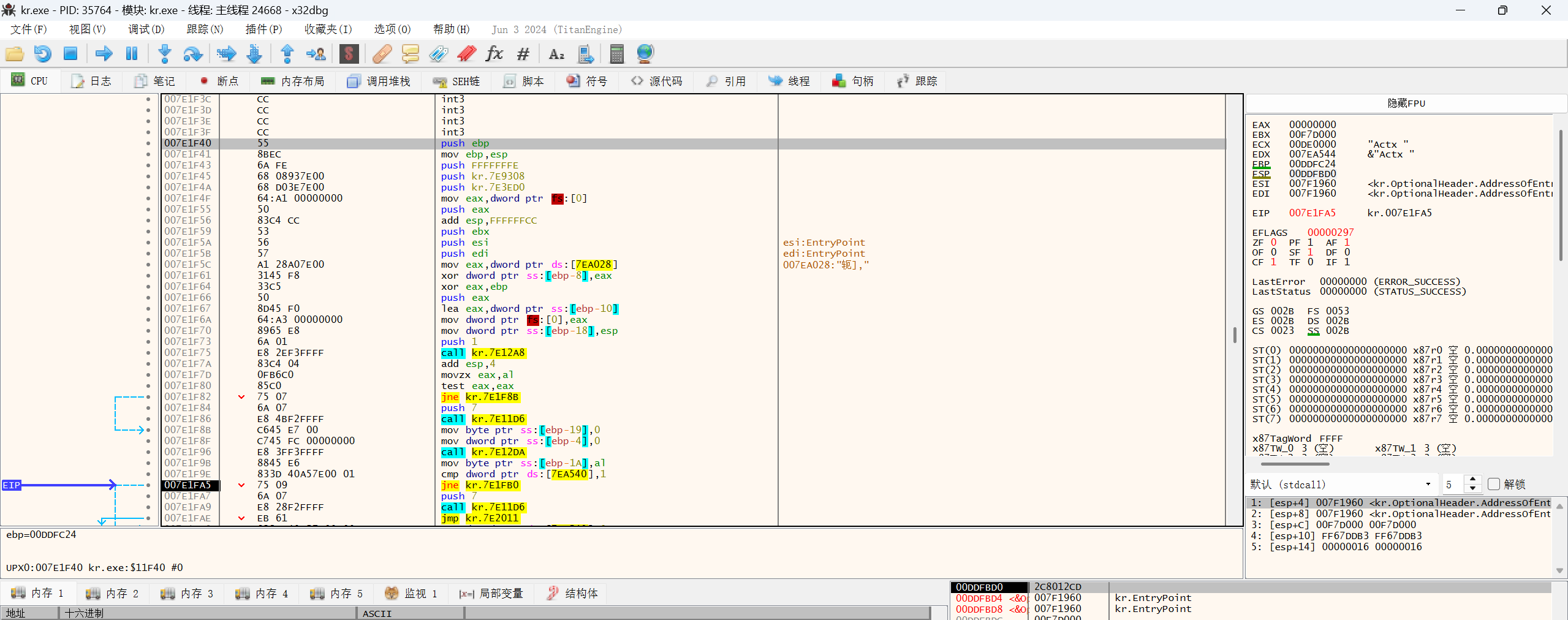 脱完进入main函数