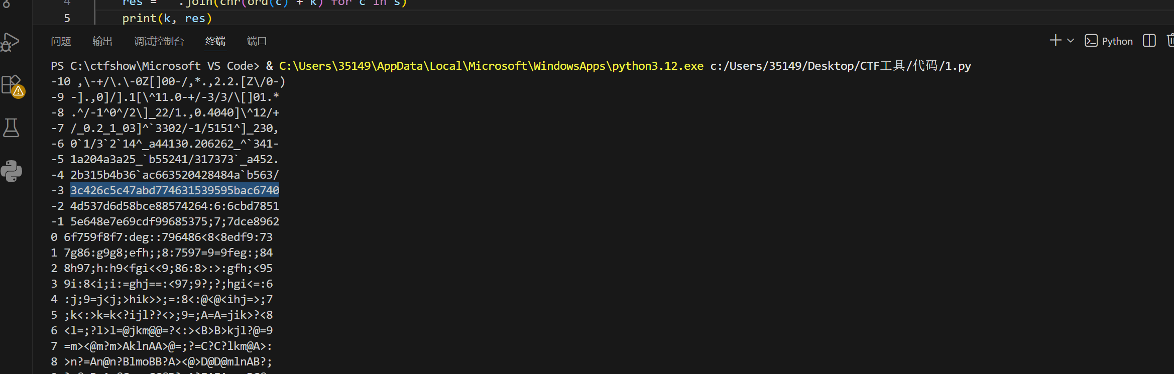 用输入的flag逐字符查表byte_A10,然后根据代码,重点算法是在第35行,当 v5 % 5 == 4 时 → 减 1;其他情况减0。也就是第4,9,14,19... 位字符要多减 1,将加密后的和v9对比,一样就是success。这段代码其实看着很复杂,可以通过AI来学习一些混淆的代码