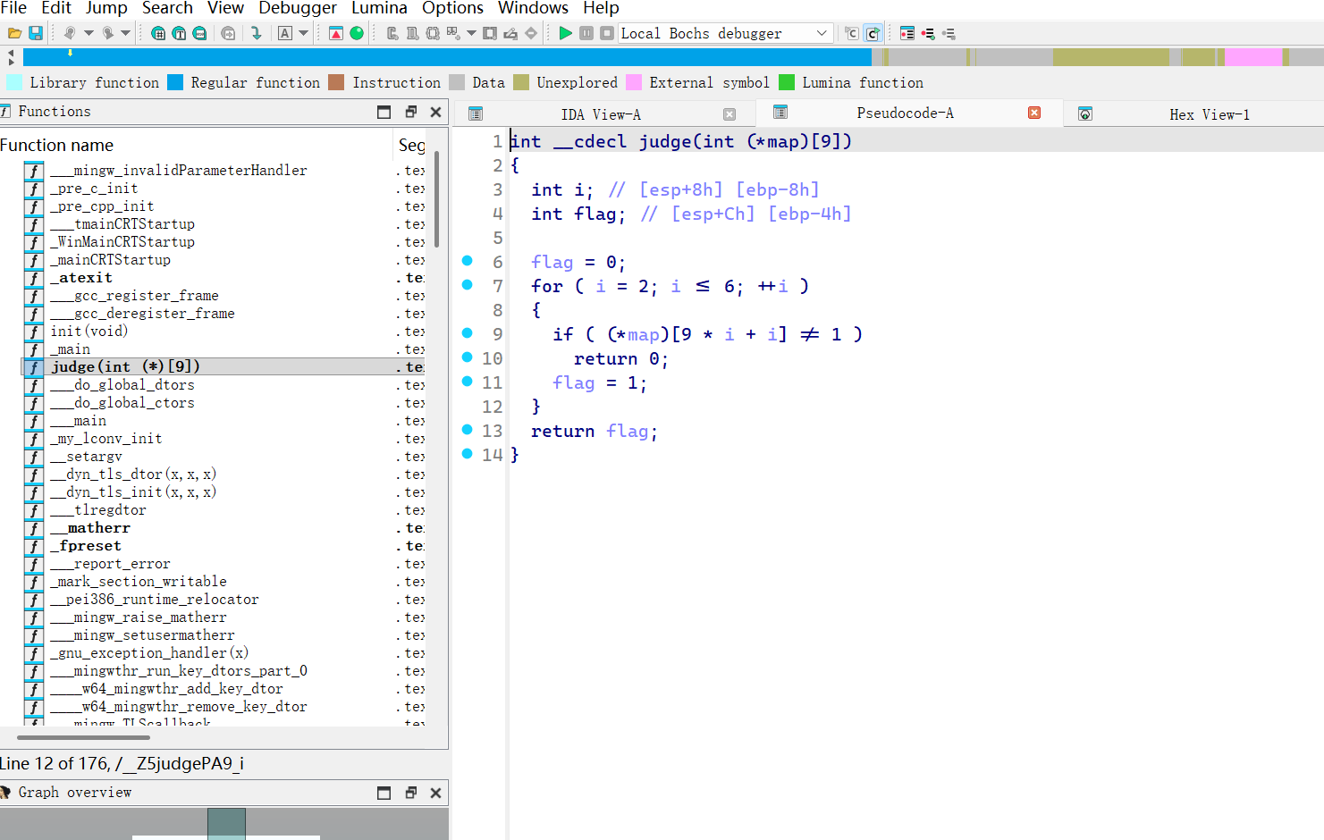 分析main函数,是一个8x8的二维数组,运行程序可以看到数组内容,也可以通过ida。