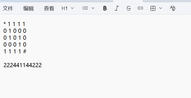 迷宫题,5x5的迷宫,1234分别对应上下左右,从*开始到#,只能走0,不能走1