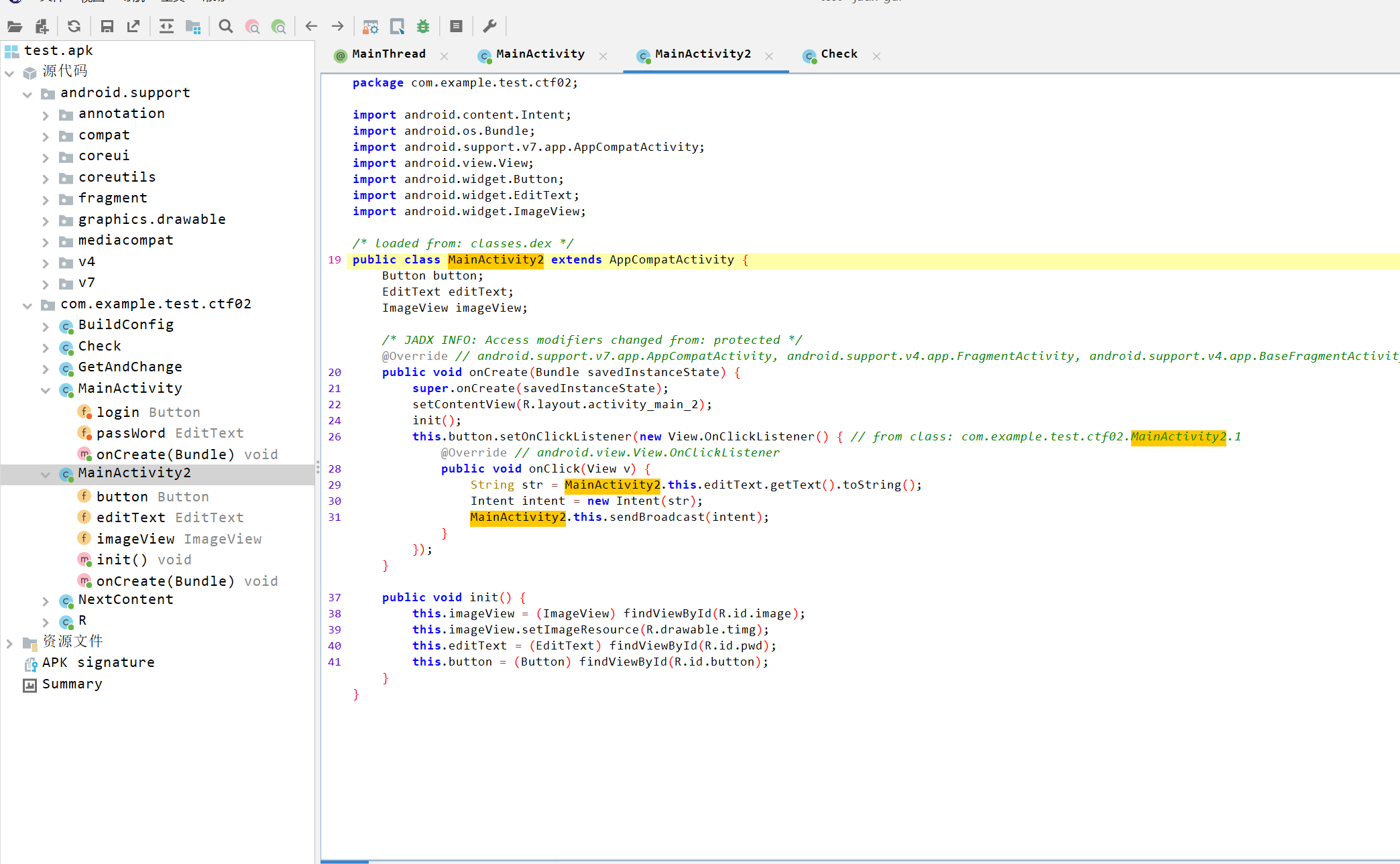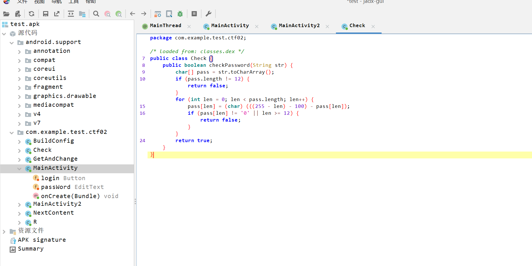 这是一个安卓逆向,找到mainActivity函数