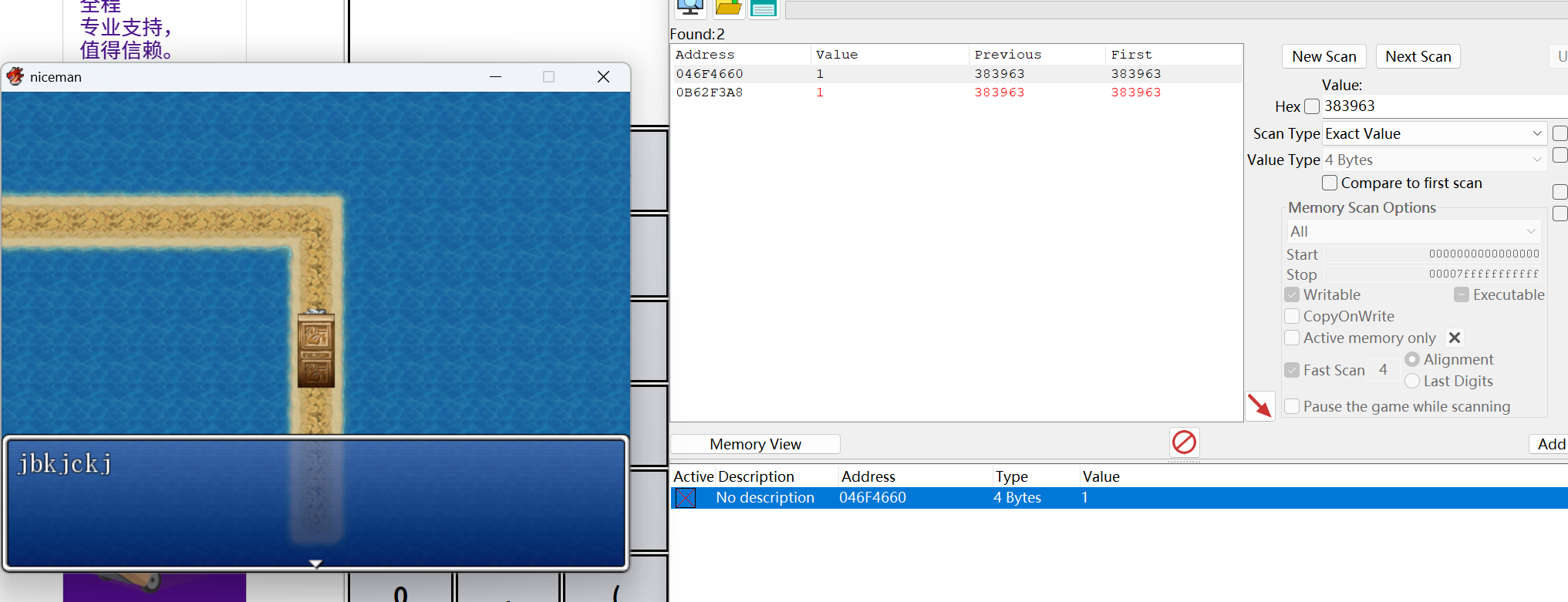 就是376这个数字,其它的不符合。如果还不确定,可以尝试继续击打匹配。它的加密方式是真实血量*2+1就是存储的数字。这事自己的血量,下一步查看怪物血量并进行搜索,连续修改怪物的血量为1,打倒即可