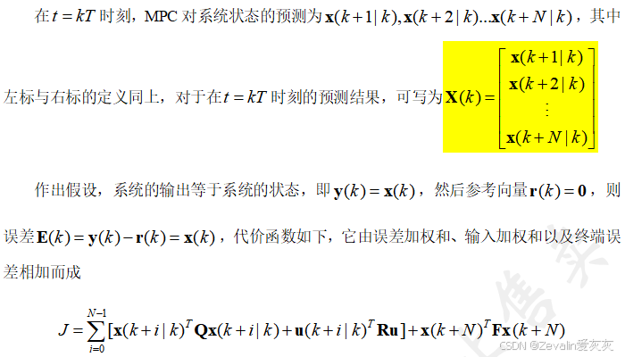 (1)MPC有多种方法实施最优化控制,这里介绍最常用的一种方法------二次规划。