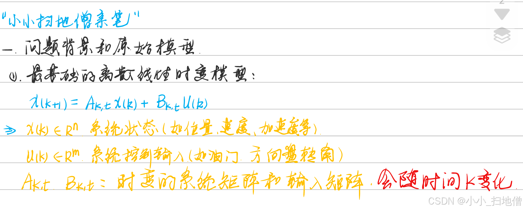 接下来我将对线性时变模型控制进行推导,因为相比于非线性模型预测控制,他最大的优点是计算较为简单,实时性好。对于自动驾驶领域来说,控制算法的实时性是至关重要的。