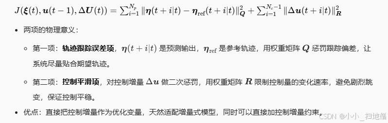代价函数可同时兼顾:轨迹跟踪误差、控制平滑性、能耗、乘坐舒适性等多目标权衡。