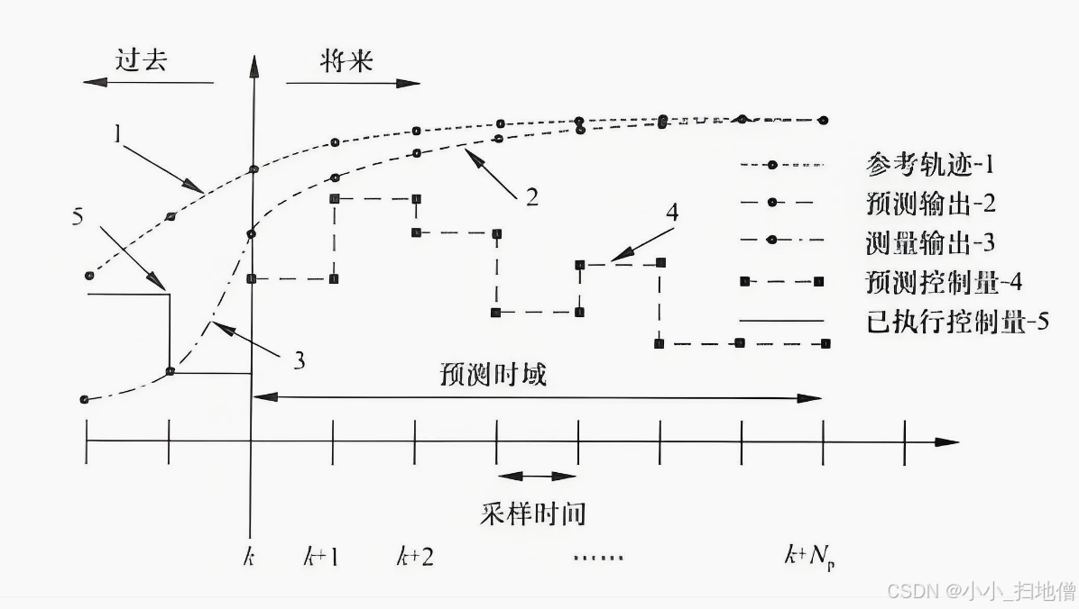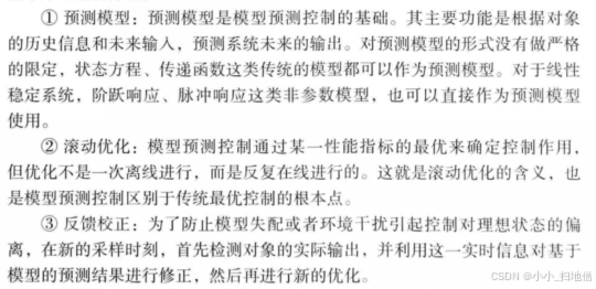 - 模型预测:利用被控对象数学模型,预测未来一段时域内系统状态与输出;