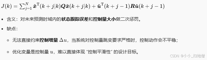 - 鲁棒性提升:滚动优化相当于 "边看边调",比开环控制更能应对不确定性。