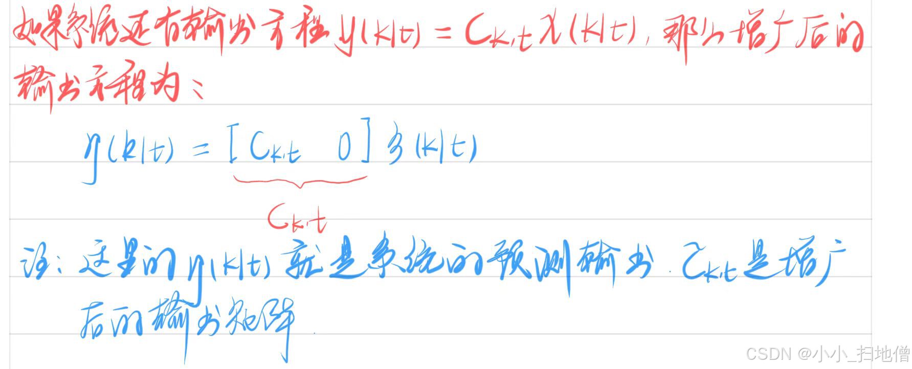 有了增广模型和简化假设,我们就可以从当前状态\(\xi(t|t)\)开始,递推预测未来的状态和输出: