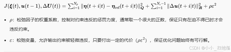 三、引入松弛因子实际工程中,当系统存在强约束或模型误差时,带硬约束的优化问题可能出现无可行解 的情况,导致控制器崩溃。为了避免这个问题,需要引入松弛因子