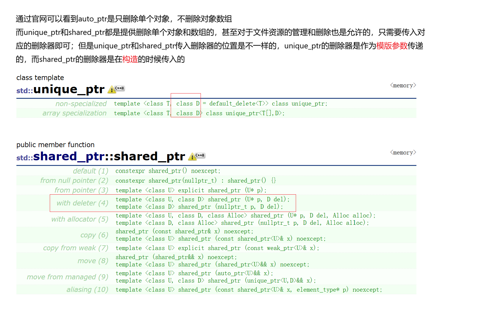 从设计的角度看,C++标准很多内容来自Boost库,比如shared_ptr,但是进行了一定的改进,比如shared_ptr和shared_array合并成了shared_ptr,构造的时候传入删除器来实现是否数组对象,而且C++标准库也支持文件资源的管理,相当于对其进行了合并和功能扩展
