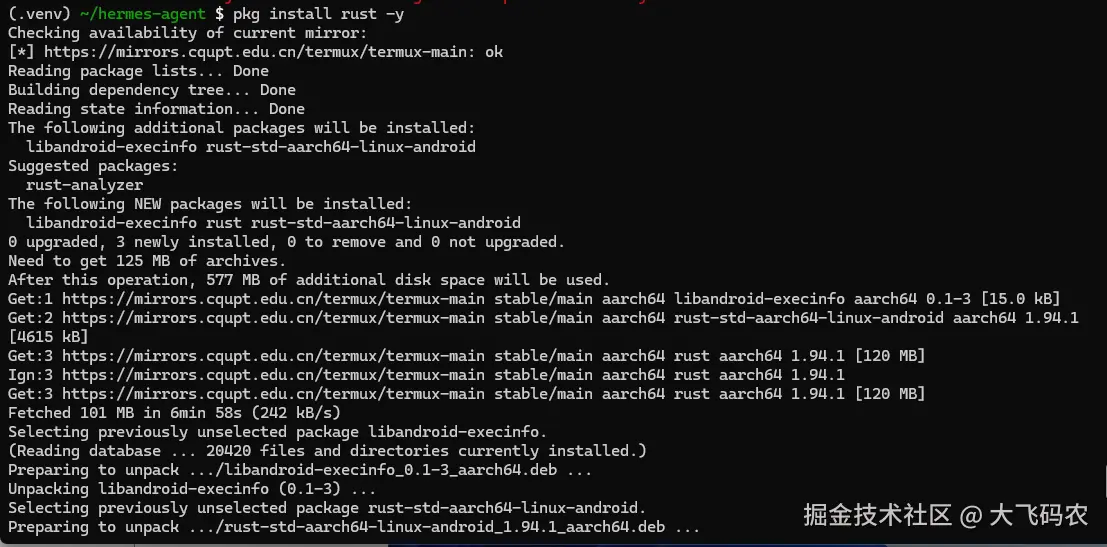 旧安卓 + Termux 缺少 Rust 编译环境,直接装会失败!,出现类似下面的错误