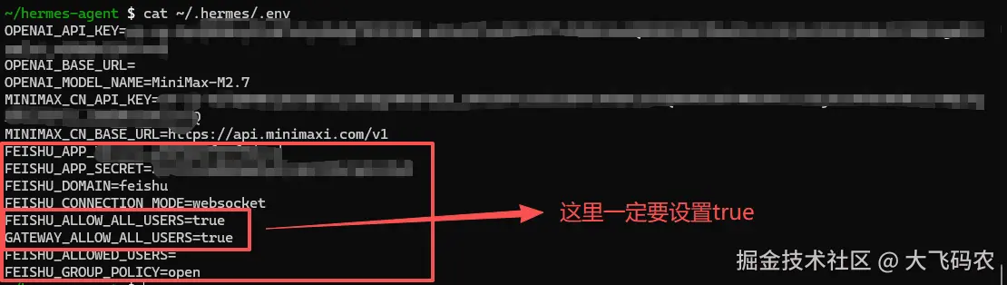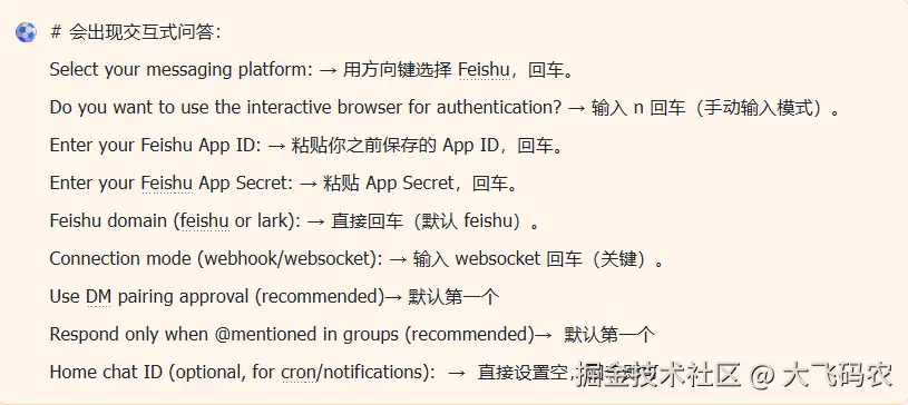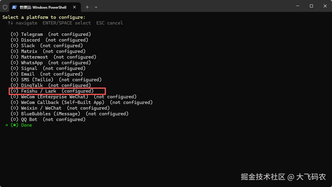 安装完后重新检查飞书的配置,然后再次运行启动命令