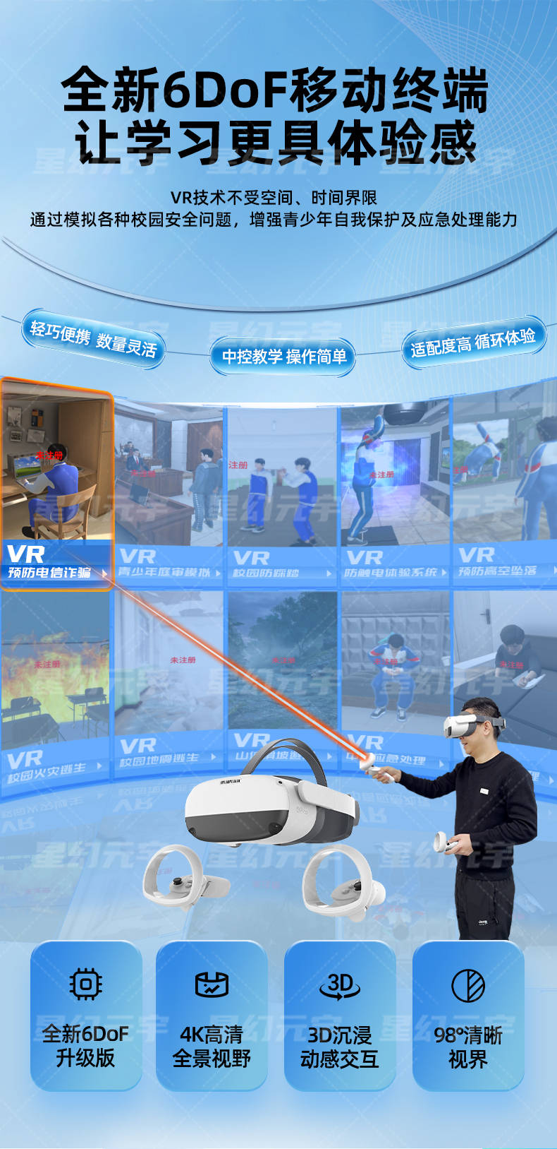 VR校园安全学习机的应用,不仅提升了安全教育的科技感和吸引力,更重要的是改变了校园安全教育的实施方式。从单向灌输转向互动体验,从"事后提醒"转向"事前预防",帮助学生在日常学习和生活中建立正确的安全意识。
