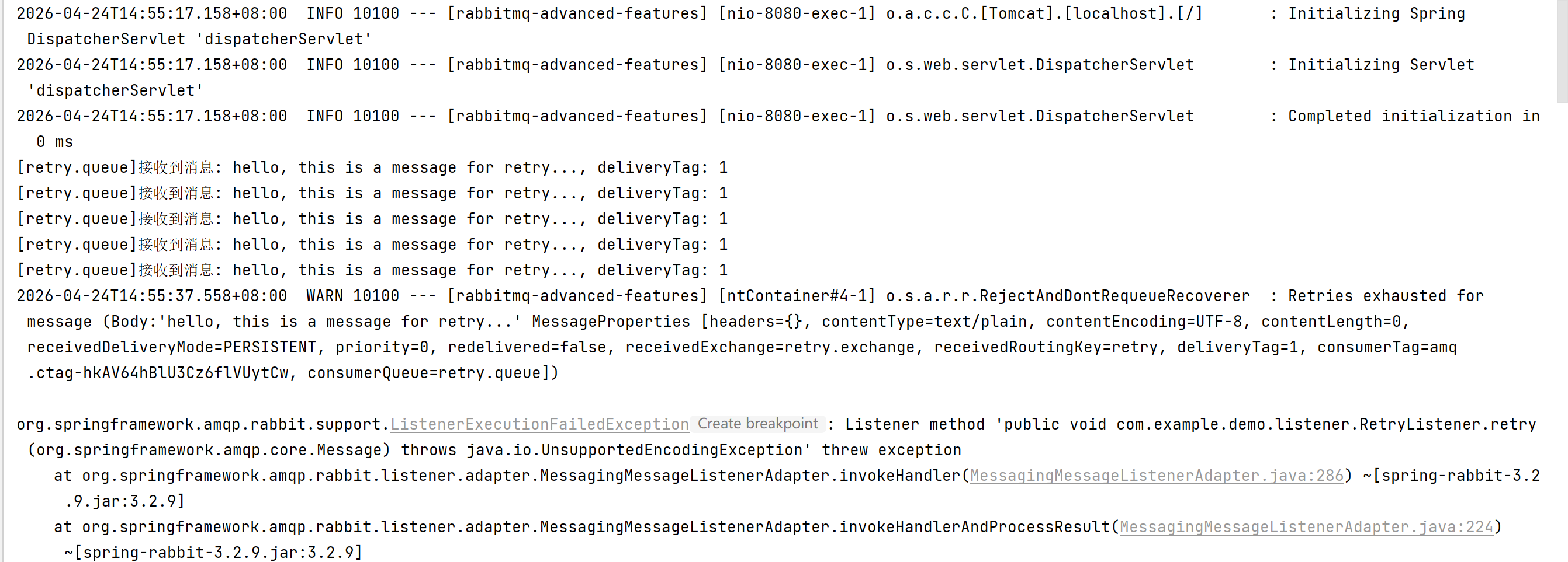 @RabbitListener(queues = Constants.RETRY_QUEUE)