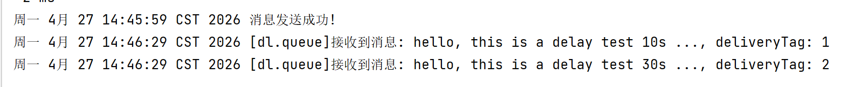 System.out.printf("%tc [" + Constants.DELAY_QUEUE + "]接收到消息: %s, deliveryTag: %d\n", new Date(), new String(message.getBody(), "utf8"), deliveryTag);