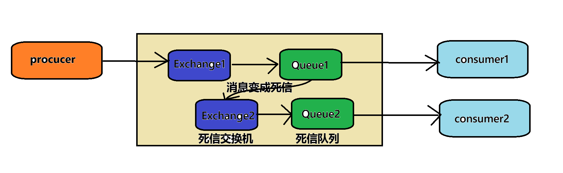 在消息的传递过程中,可能会遇到各种异常情况(如:网络故障,服务不可用,资源不足等问题),导致消息处理失败。